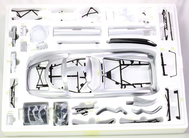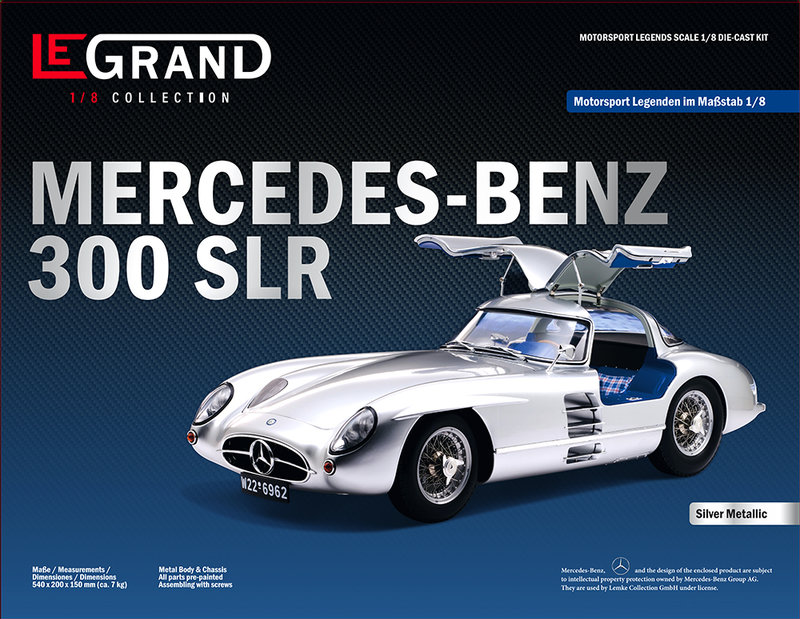 LEGRAND 1/8 Bausätze werden aus qualitativ hochwertigen Materialien hergestellt. Die Karosserie des rund 8 kg schweren Modells besteht aus Metalldruckguss und ist bereits fertig lackiert. Der Bausatz aus mehr als 900 Teilen ist leicht zu montieren und enthält Teile aus verschiedenen Werkstoffen wie Metall, Gummi, Textilien und hochwertigem Kunststoff. Die meisten Bauteile werden geschraubt und gesteckt. Bei nur wenigen Teilen wird das Kleben mit einem Modellbaukleber empfohlen. Lenkung und Federung sind funktionsfähig sowie auch Türen und Klappen sind vorbildgerecht zu öffnen.