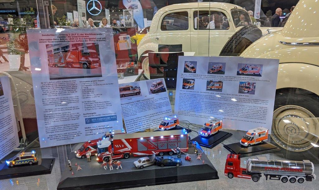 Die Präsentation unserer MBMC Jahresmodelle in 1:87 wurde viel bewundert und gab uns somit gute Anknüpfpunkte für Gespräche, aber als absolutes Highlight unserer Ausstellung präsentierten sich die „Blinkis“, damit sind die 1:87 Einsatzfahrzeuge unseres Clubfreundes Karlheinz Alfs mit vorbildgerechten Warnblinkfunktionen (leuchtende LED’s) gemeint!