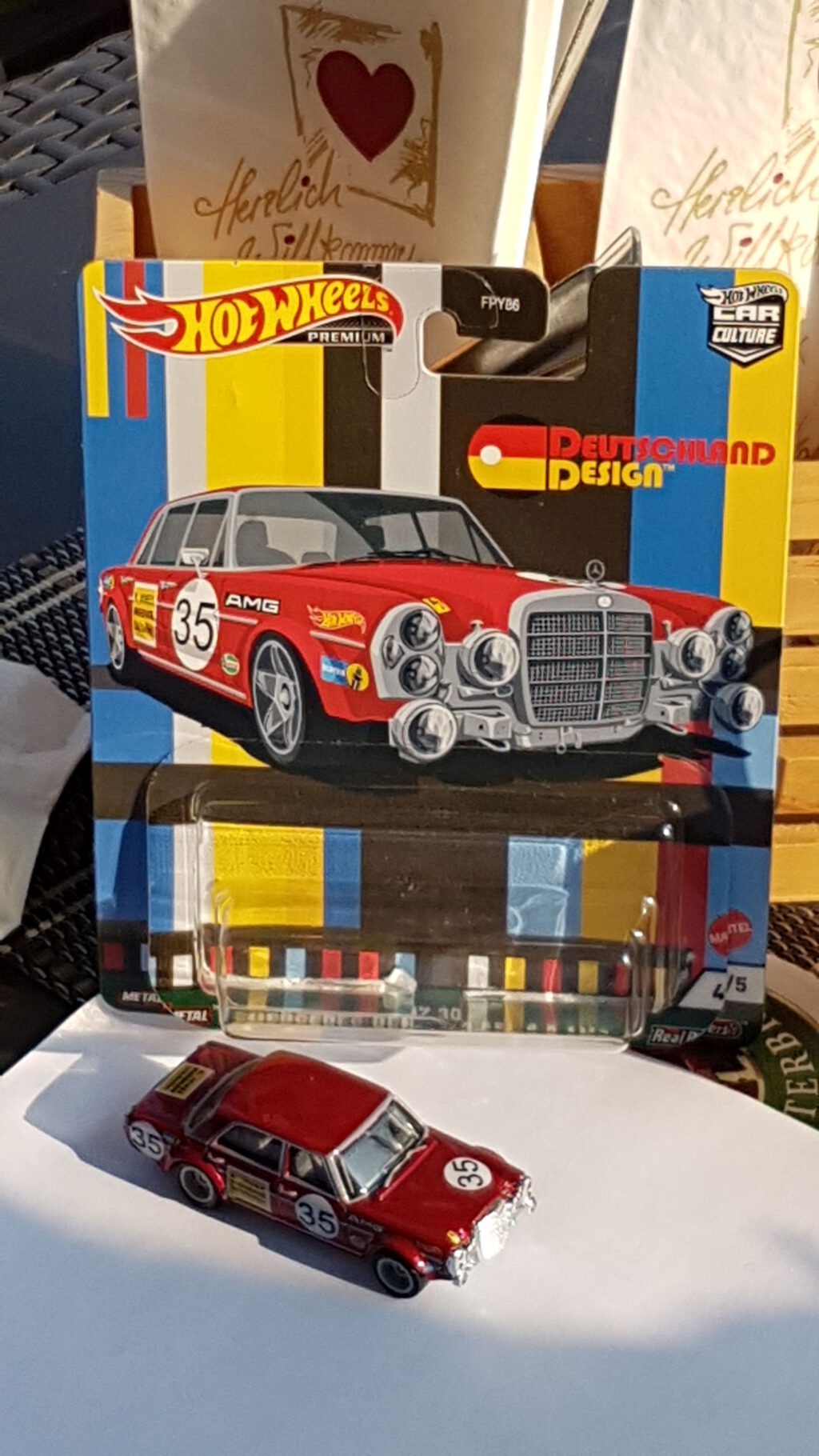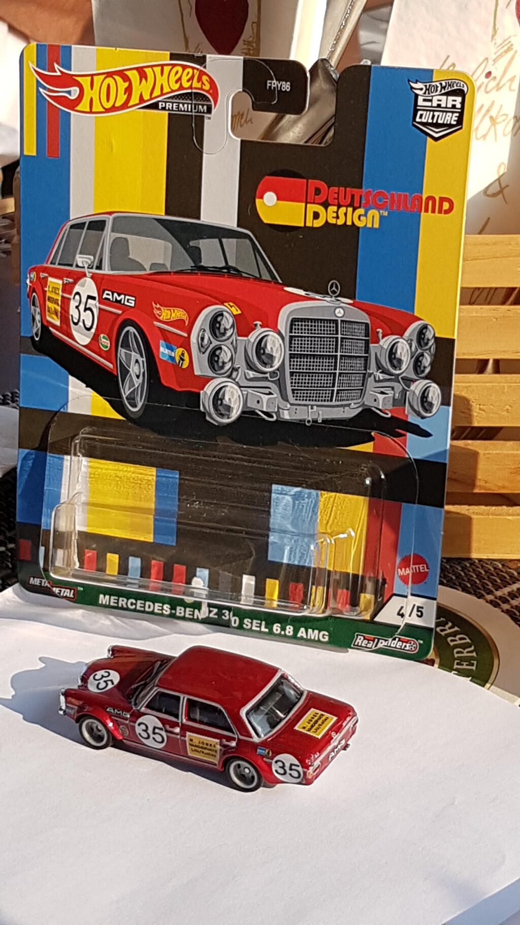 Unser lieber Sven hatte zum Stammtisch zwei besondere Exoten aus den USA mitgebracht, zwei Hotwheels in sogenannten Short Cards (typisch amerikanische Form einer Blister-Verpackung), darunter ein Exklusiv-Modell von einem chromfarbigen 300SL „Gullwing“ sowie einen 300 SEL 6.8 AMG, in Fachkreisen auch unter dem Spitznahmen „Rote Sau“ bekannt.