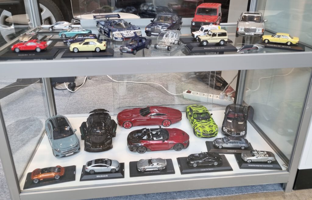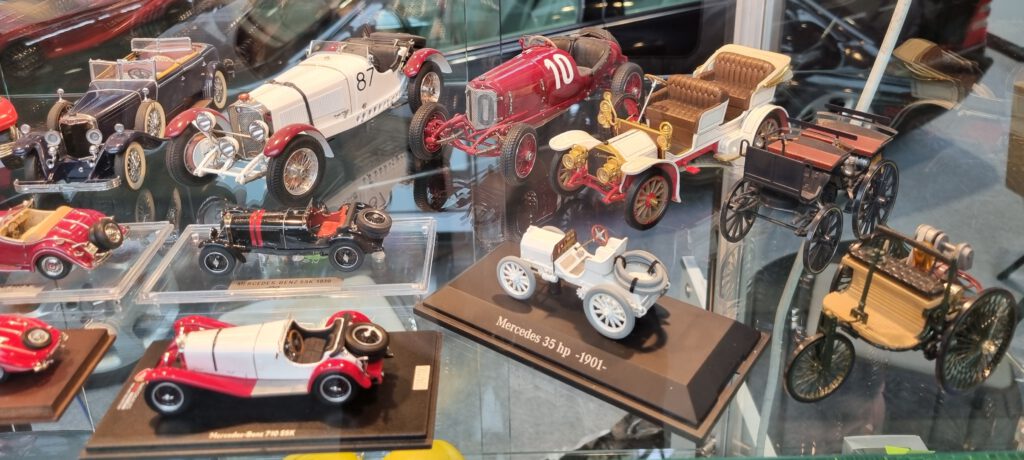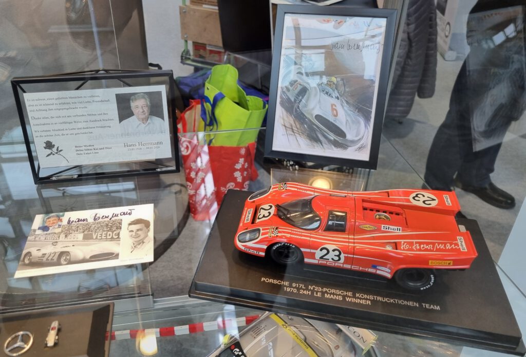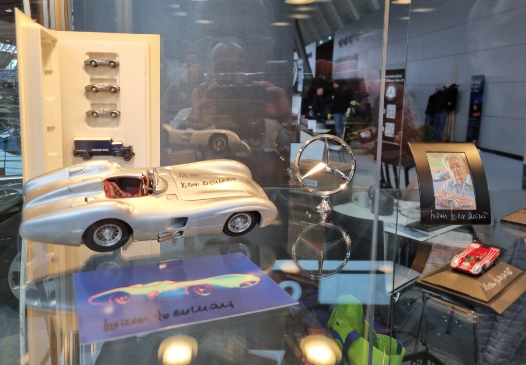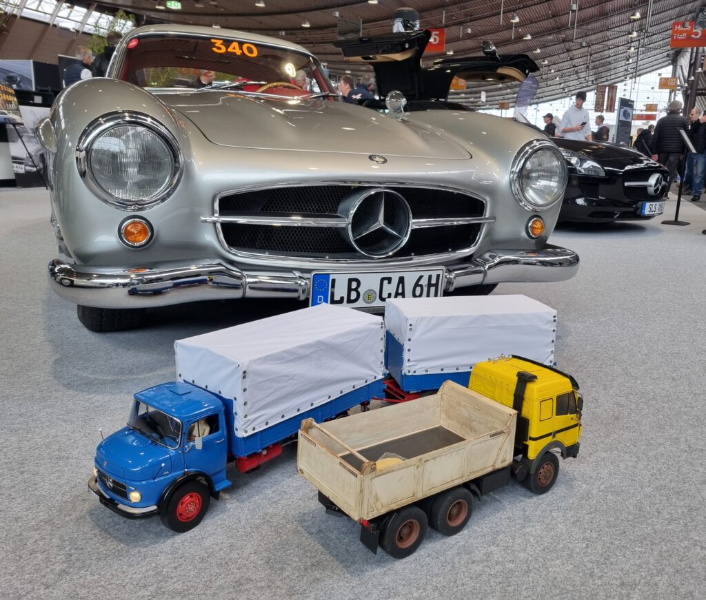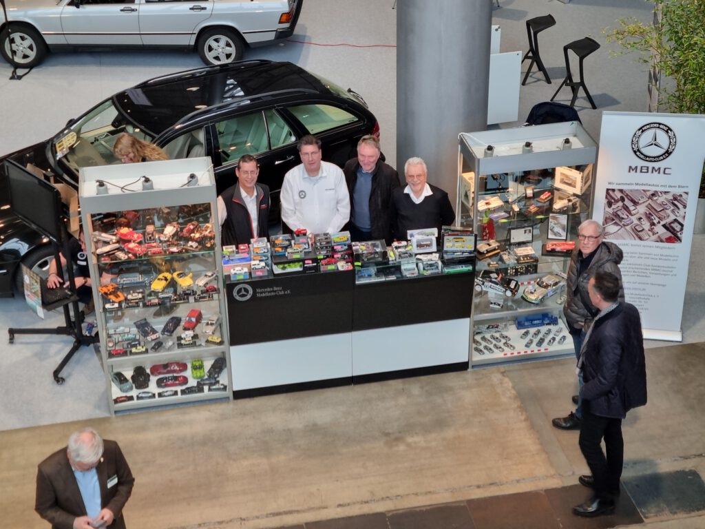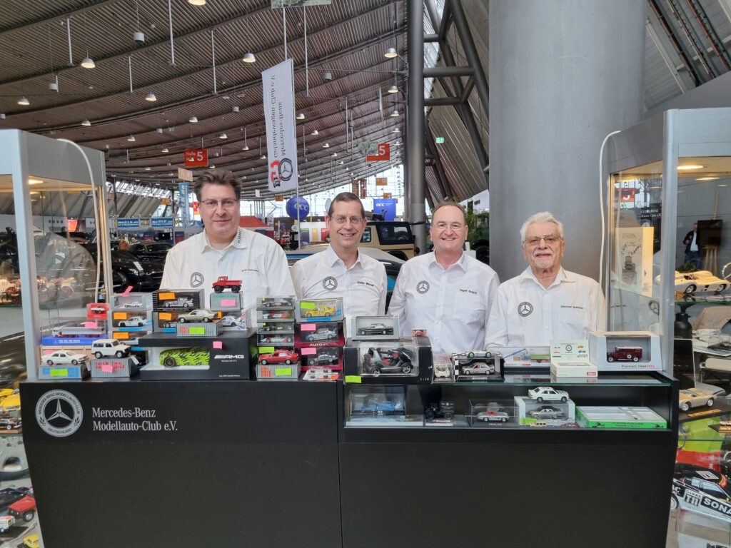 Der MBMC hat auch 2026 an der Retro Classics in Stuttgart teilgenommen. Vom 19. – 22. Februar konnten wir auf dem Gemeinschaftsstand der Mercedes-Benz Markenclubs in der Halle 5 unser Hobby präsentieren. Sven Hahmann hat wie in den Vorjahren die gesamte Organisation übernommen und zwei Vitrinen mit interessanten Modellen bestückt. In der ersten Vitrine haben wir auf 4 Böden 140 Jahre Autogeschichte per Modellen dargestellt. In der zweiten Vitrine haben wir zwei Böden als Hommage an den im Januar verstorbenen Rennfahrer Hans Hermman gestaltet. Und da Hans Hermann auch mit Rennwagen aus dem Hause Porsche sehr erfolgreich war, haben wir, was wirklich selten vorkommt, Modelle einer anderen Marke mit präsentiert. Der Erfolg hat uns Recht gegeben. Beide Vitrinen, die zweite Vitrine hat ergänzend Rennsport-Modelle gezeigt, haben beim Publikum großen Anklang, viel Zustimmung und zahlreiche Fragen erzeugt.